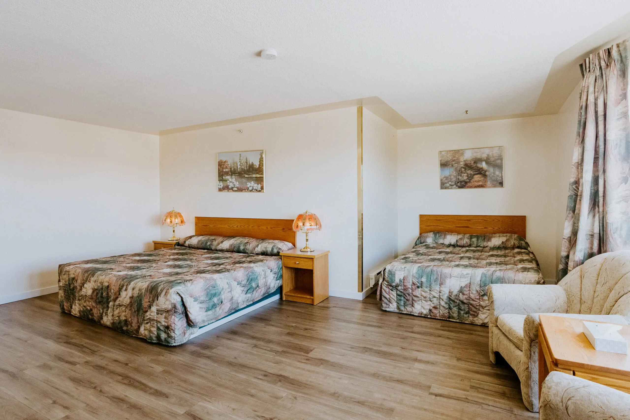 Ideal for families or small groups, this room includes two queen beds and a handy kitchenette for added convenience.